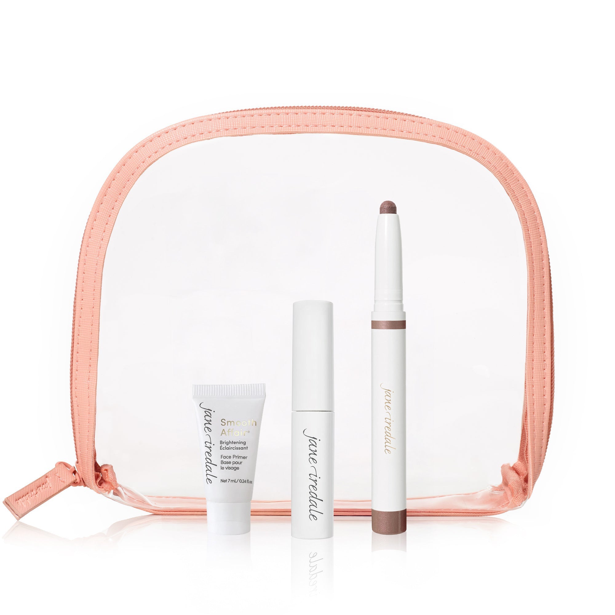 Consider this your chic little touch-up kit. Curated with skin-loving Jane Iredale favourites, this set brightens, primes, defines and lengthens for a polished, pulled-together look in minutes. Tucked into a clear peach cosmetic pouch that’s perfect for travel or your everyday tote, it’s the ultimate elevated grab-and-go edit.