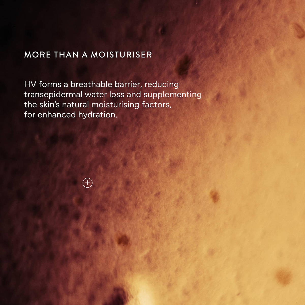 HV amplifies the skin’s ability to hydrate itself through the support of Hyaluronic Acid precursors. These encourage skin to produce its own hyaluronic acid and natural moisturising factors. Secondly, to preserve existing moisture, the formulation includes a flexo-silicone mesh - an amalgamation of silicone molecules that have undergone a reaction to create a layer that is both protective and permeable. This mesh forms a physical barrier that seals in moisture, yet remains lightweight and breathable.