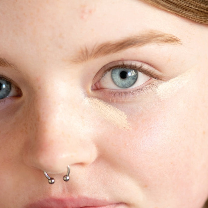 Use our Eco Vegan Line & Blend Brush to better blend the product under eyes and smaller areas, or the Eco Vegan Multipurpose Brush for larger areas.