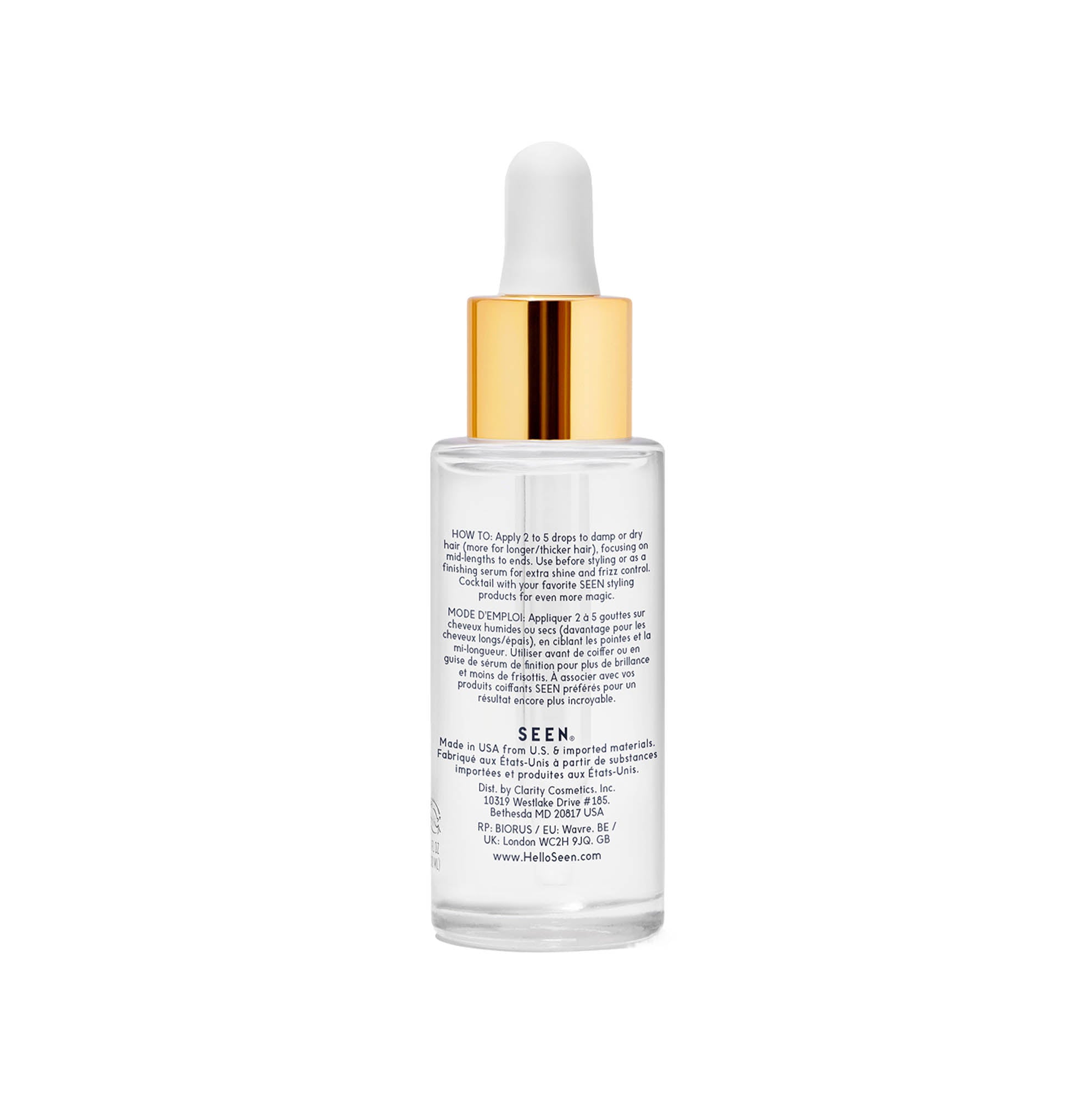 HOW TO USE: Apply 2-5 drops to damp or dry hair (more for longer/thicker hair), focusing on the mid-lengths to ends. Use before styling or as a finishing serum for extra shine and frizz control. Cocktail with your favourite SEEN styling products for even more magic.