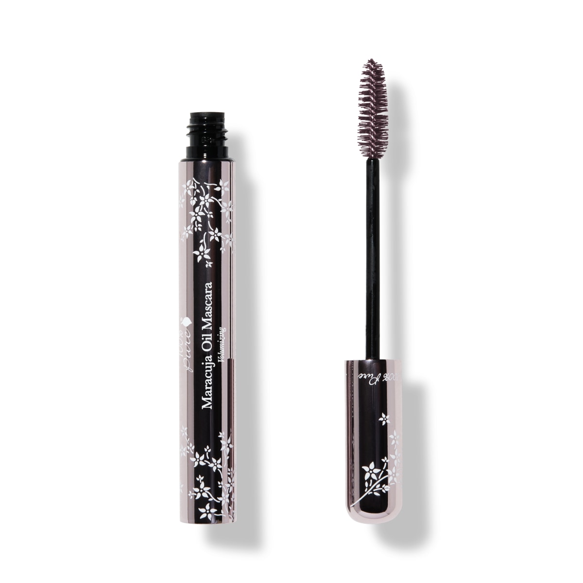 Our volumizing mascara formula is infused with luscious Maracuja oil from passion fruit, to smoothly coat each lash without clumping or flaking. Conditioning Pro-vitamin B5 pairs with lash-thickening seaweed to enhance volume and promote healthy hair growth. Fitted with a tapered oval tip and richly pigmented with tea, cocoa, and coffee beans, this water resistant mascara delivers dramatic color and feathery, natural looking volume.