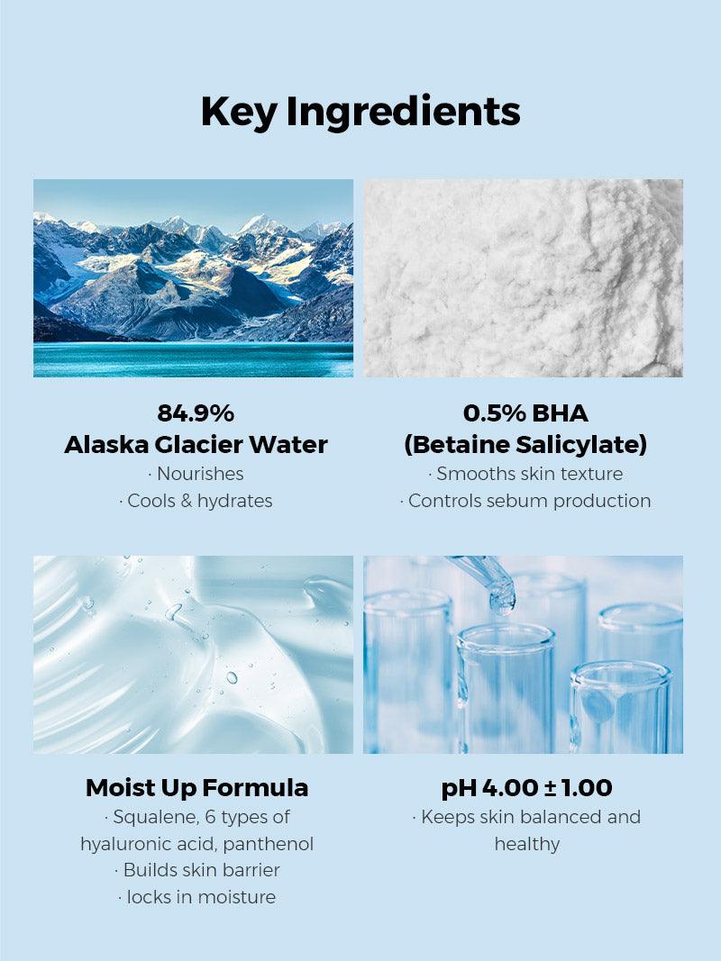 Full of strong natural moisture energy with high content of Alaskan glacier water.