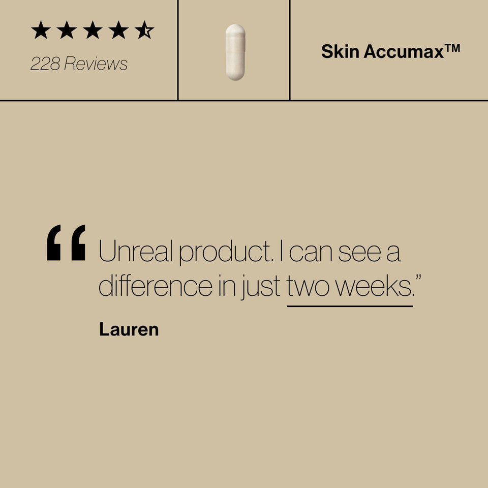 Skin Accumax® works from the inside and nourishes all skin layers. It feeds every cell in the body so can help support all areas of the skin such as the face, chest, back and shoulders. Doesn't contain harsh chemicals.