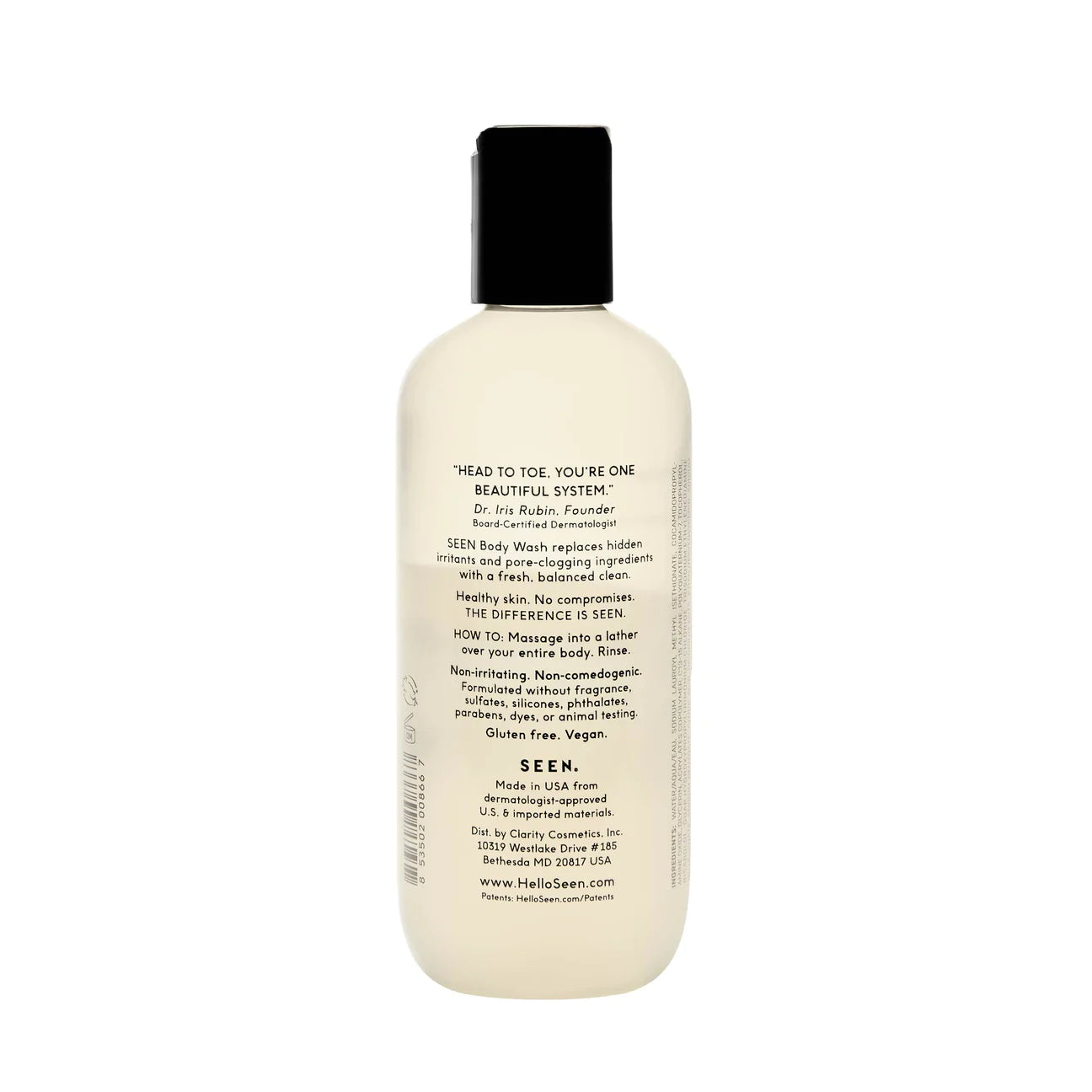 Developed by a dermatologist, this body wash provides SEEN’s non-irritating, non-comedogenic benefits for every square inch of your skin.The mild formula features naturally-derived, sulfate-free surfactants that leave skin feeling fresh and balanced, while removing hidden irritants and pore-clogging oils.
