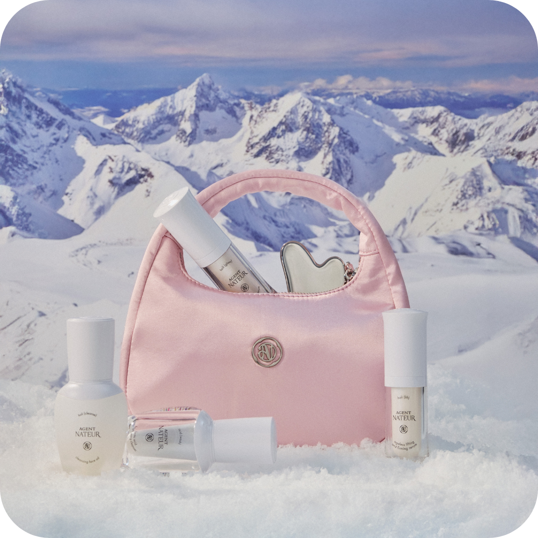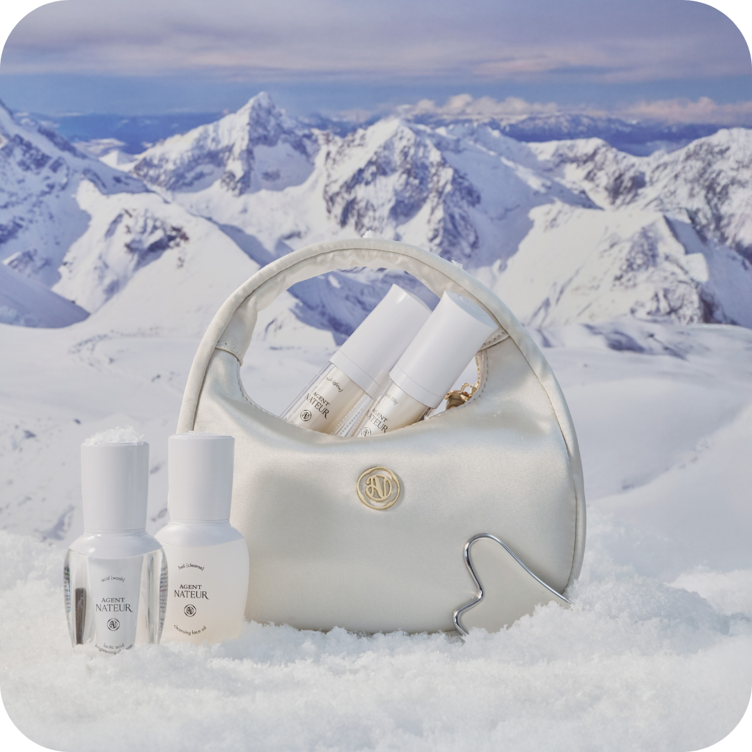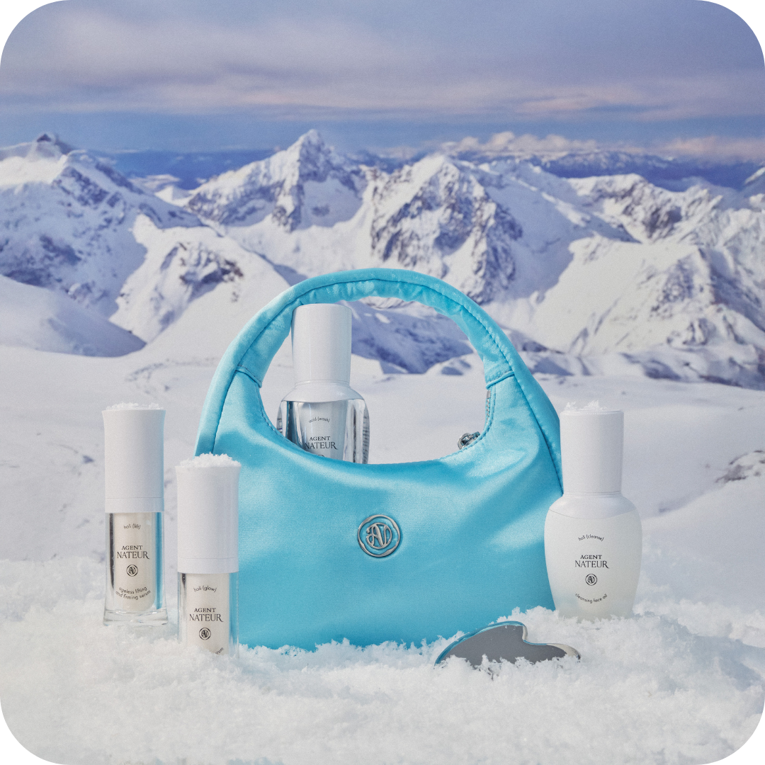 Introducing the Agent Nateur Agent Icons Gift Set, a limited-edition winter ritual featuring five of the brand’s cult-favorite skincare products in deluxe sizes—housed in an exclusive ice blue satin handbag with custom Agent Nateur monogram hardware. This luxe collection blends high-performance skincare with stylish indulgence, making it the ultimate gift for beauty lovers (or yourself).
