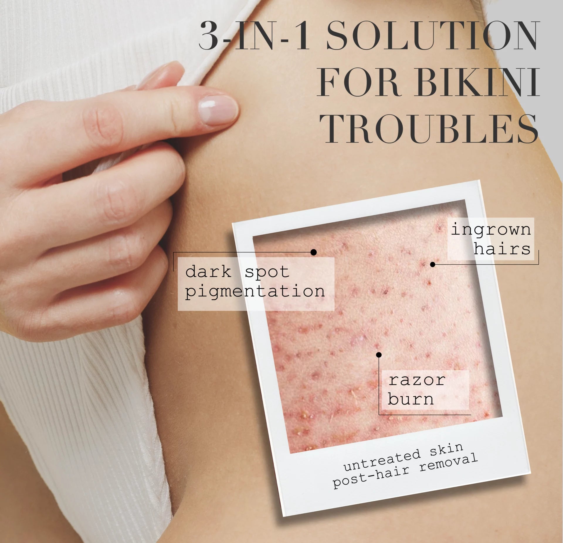 WHAT TO EXPECT: Brightening dark spot pigmentation on the bikini area, soothing razor burn and bumps as a result of shaving and hair removal. Can also be used to fade other dark spot pigmentation on the body.