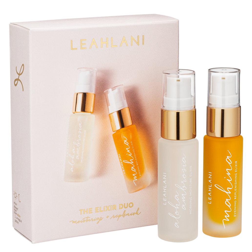 Your skin has different needs throughout the day. This powerful duo of Aloha Ambrosia + Mahina Elixirs work day and night to moisturize, repair, and turn back the clock on your complexion. Use Aloha Ambrosia in the mornings for lightweight all-day moisture and supernatural glow, and go to bed with Mahina, our youth-enhancing beauty sleep in a bottle.