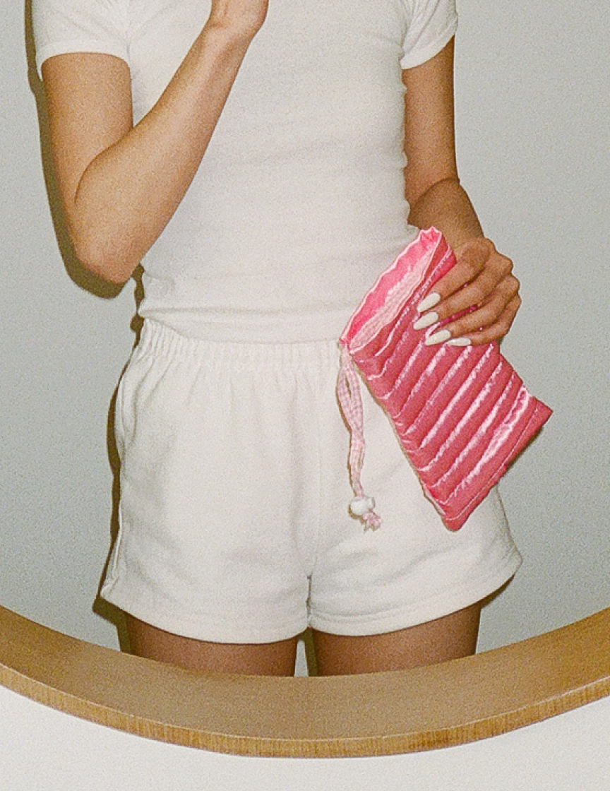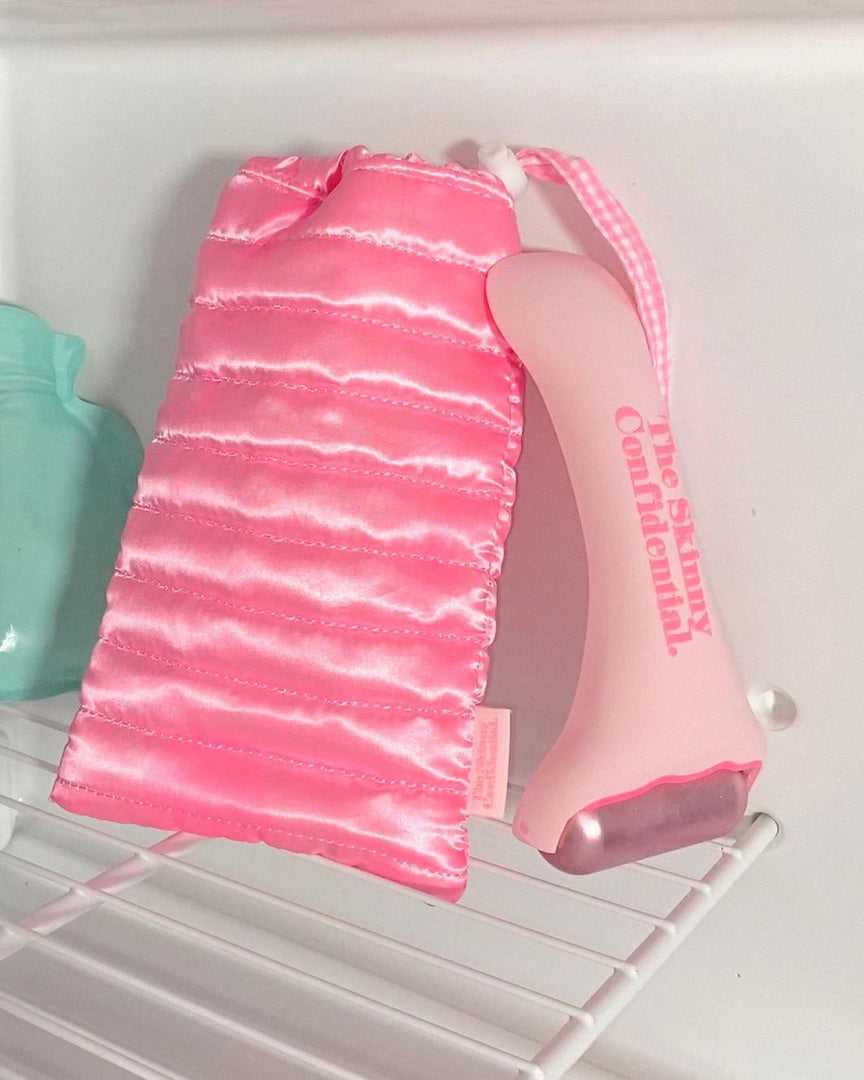 Stashing your HOT MESS ICE ROLLER is a piece of cake. She's sparkly, she's pink, she's adorable, she's gingham & here to keep your ice roller safe from 1998's dusty peas.