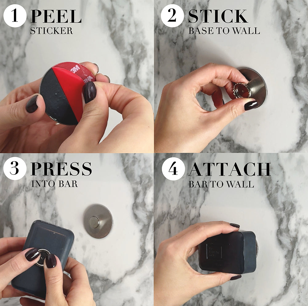 European elegance meets sophisticated functionality. This magnetic, self-adhesive soap dock extends the life of your natural bar soap and saves shower space. Perfect for small spaces, the soap dock adheres to any smooth surface in your shower.